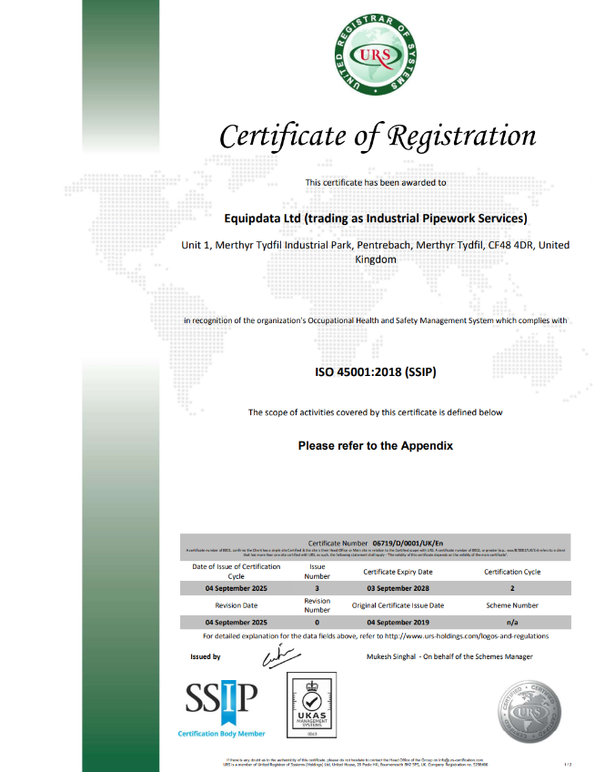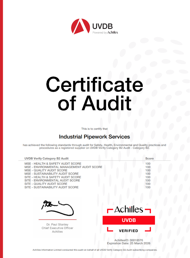 IPS is ISO 45001:2018 accredited and an Achilles UVDB verified company. The activities of the company are managed in full compliance with statutory requirements. The company’s Health and Safety systems have been developed to match the continuing high standards required by the industry. Regular safety audits are carried out both internally and by our own external Safety Consultants.
