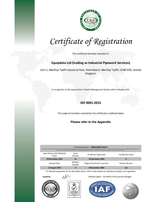 IPS have a comprehensive portfolio of weld procedures to BS EN 15614-1 and ASME IX, also welder qualifications to BS EN ISO 9606-1 and ASME IX, all certified by Lloyds Register and TUV.